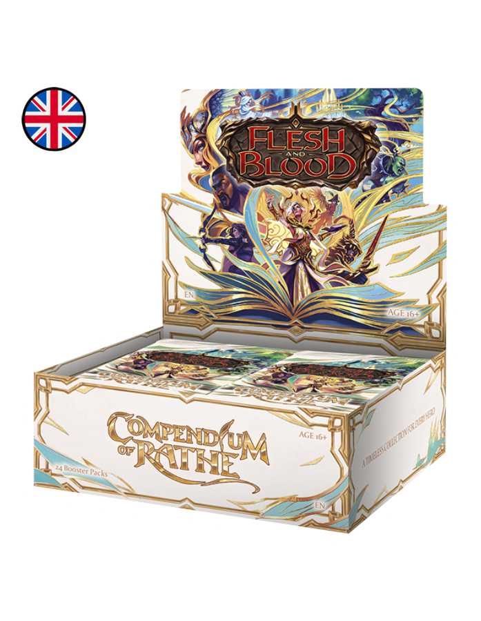 COMPENDIUM OF RATHE es una caja de refuerzo premium con soporte para todos los héroes, clases y talentos de Flesh and Blood.