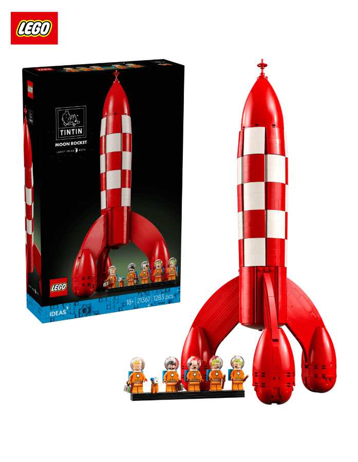 - KIT DE CONSTRUCCIÓN DEL MODELO DE UN COHETE: Despega rumbo a cumplir la misión de construir el emblemático Cohete Lunar de Tintin® LEGO® Ideas (21367), una recreación del que aparece en los cómics clásicos Objetivo: la Luna y Aterrizaje en la Luna