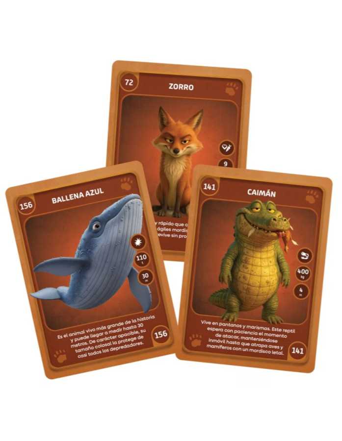 Jugad una a una vuestras cartas de animales, con un poder de 0 a 168, usad las cartas de bonificación para desestabilizar a los demás participantes y ganad la baza con la carta más fuerte.