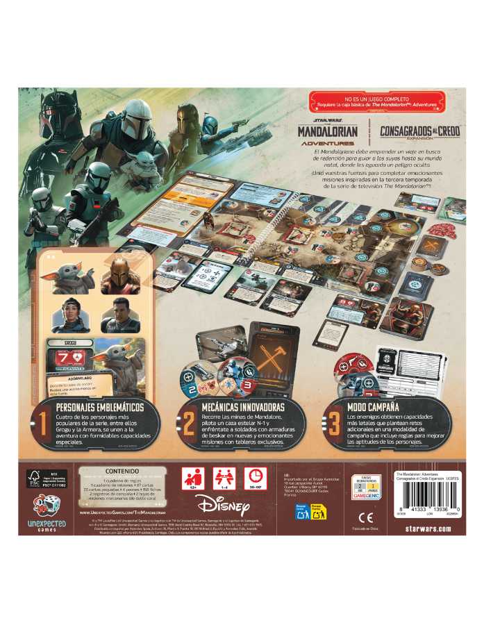 Mecánicas innovadoras. Recorre las minas de Mandalore, pilota un caza estelar N-1 y enfréntate a soldados con armaduras de beskar en nuevas y emocionantes misiones con tableros exclusivos.