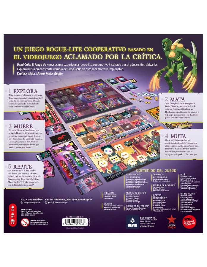 Dead Cells es un juego de mesa que ofrece una experiencia cooperativa rogue-lite inspirada en el género Metroidvania en la que se basa el vieojuego del que proviene la idea.