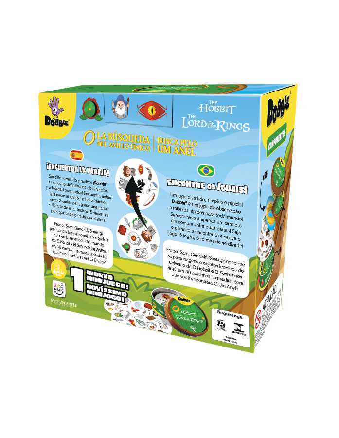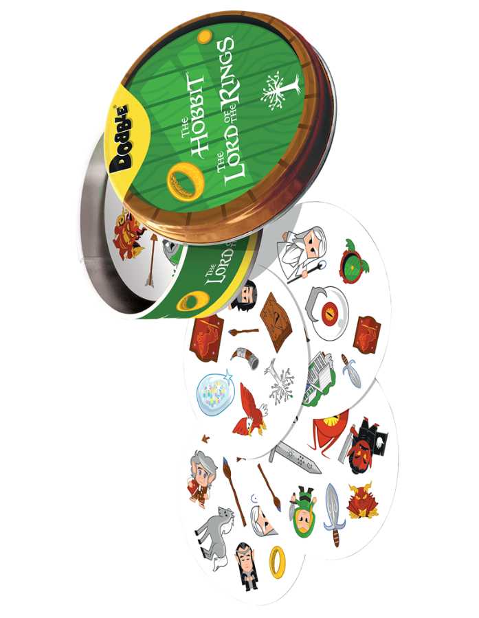 Dobble El Hobbit y El Señor de los Anillos es un juego de cartas con el que disfrutarás de la clásica diversión de uno de los partys favoritos de todas las edades, el DOBBLE con el universo de la Tierra Media. ¡No te lo puedes perder! ¡ENCUENTRA LA PAREJA!