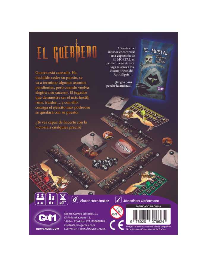 Además en el interior encontrarás una expansión de EL MORTAL, el primer juego de esta saga relativa a los cuatro jinetes de la Apocalipsis…¡juegos para perder la amistad!