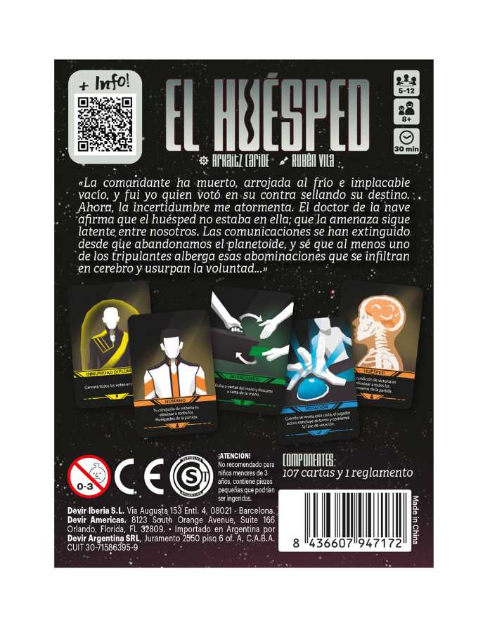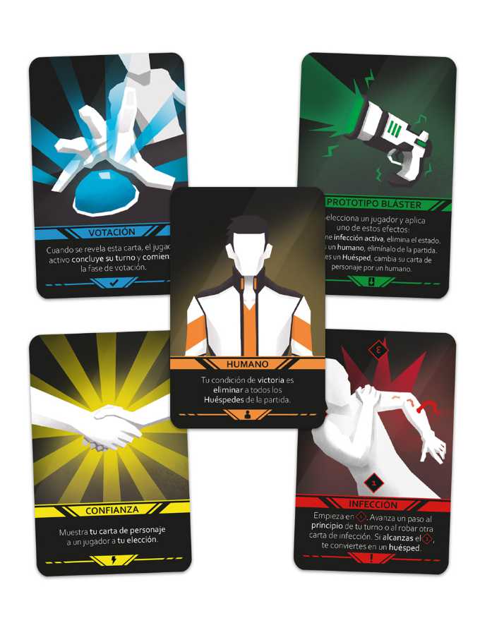 El Huesped es un juego de cartas en el que los jugadores representarán a la tripulación de la nave extrasolar Beagle, que es atacada por un extraño parásito que se aloja en el cerebro de las personas y controla su voluntad.