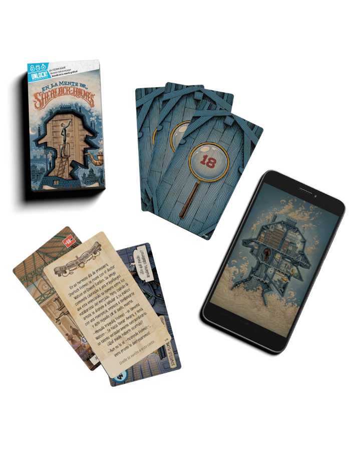 La línea Unlock! Miniaventuras te ofrece la posibilidad de disfrutar de una estupenda aventura con la que disfrutar y probar este sistema de juego único y emocionante, en esta ocasión con el detective más famoso de todos los tiempos.