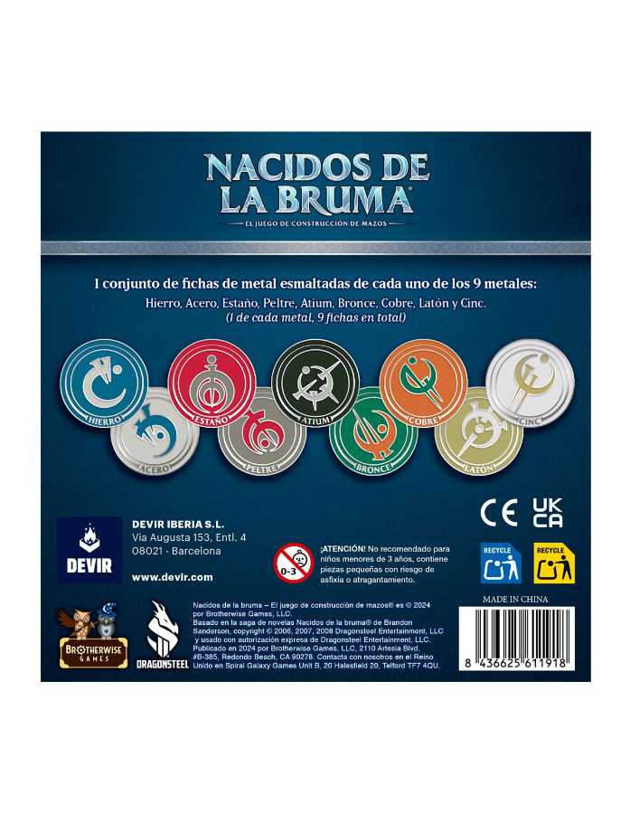 Nacidos de la Bruma: el Juego de Construcción de Mazos es un juego de cartas basado en la exitosa serie de novelas Mistborn de Brandon Sanderson.