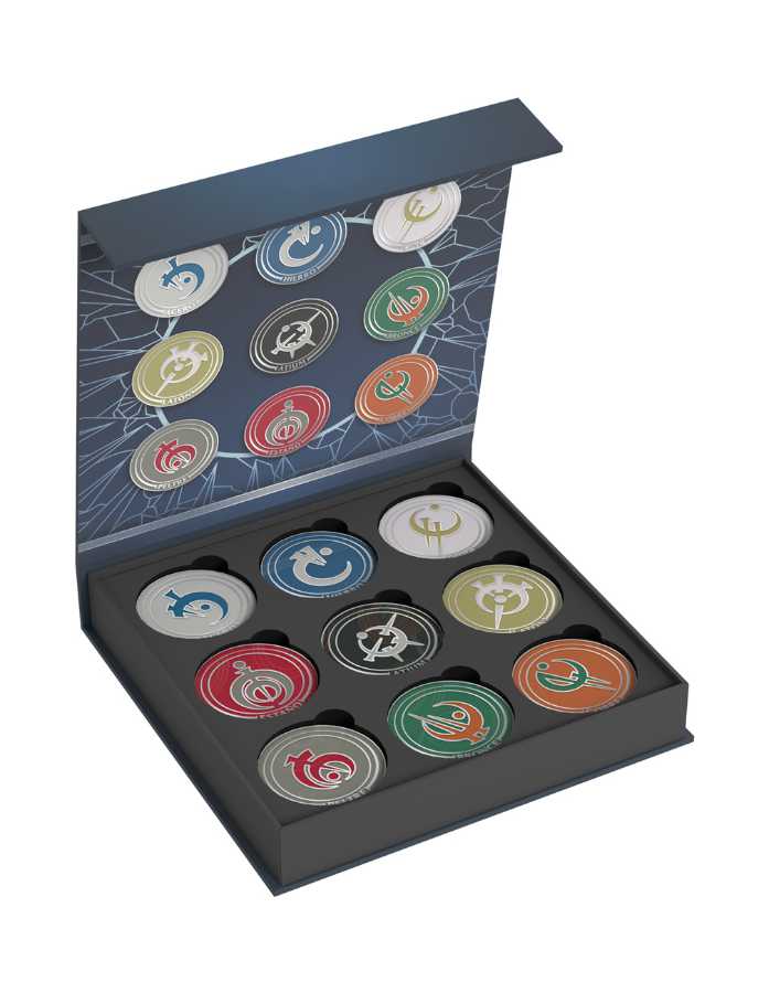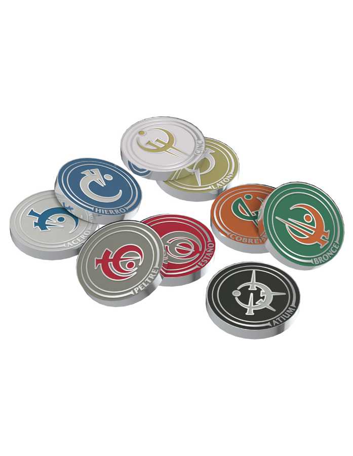 Nacidos de la Bruma: el Juego de Construccion de Mazos – Fichas de Metal es un accesorio par el juego de mesa Nacidos de la Bruma con el que podrás deluxificar tu zona de juego sustituyendo las fichas de cartón del juego base por estas espectaculares fichas metálicas esmaltadas para un jugador.