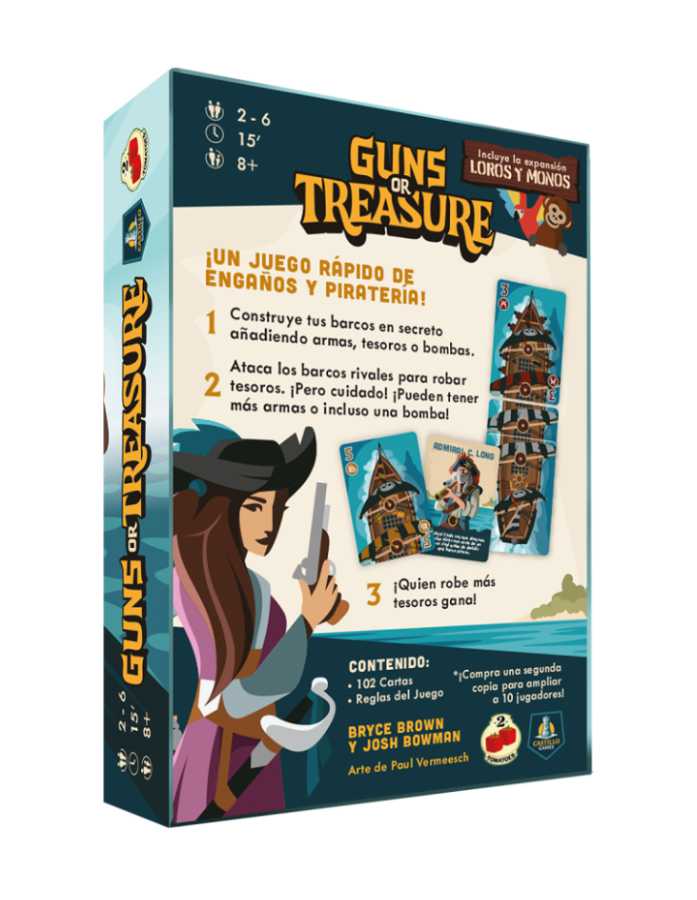 Guns or Treasure es un juego de cartas lleno de intrépidos piratas y en el que tendrás que usar todas tus capacidades de faroleo.
