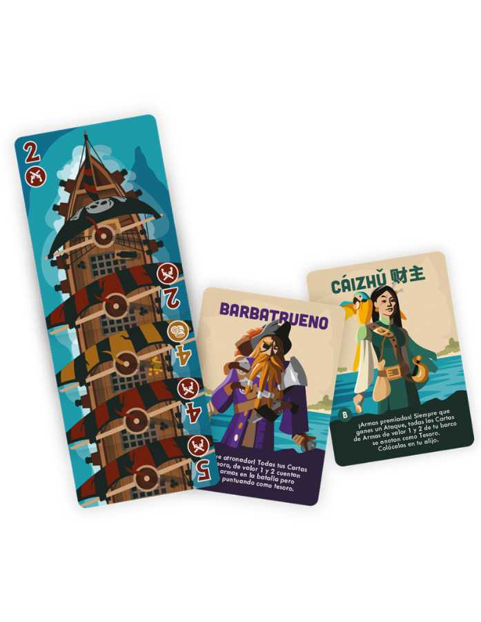 Las cartas añaden armas, tesoros o una bomba a sus barcos. Los jugadores se turnan para saquear los barcos de otros jugadores o retirarse a un lugar seguro.