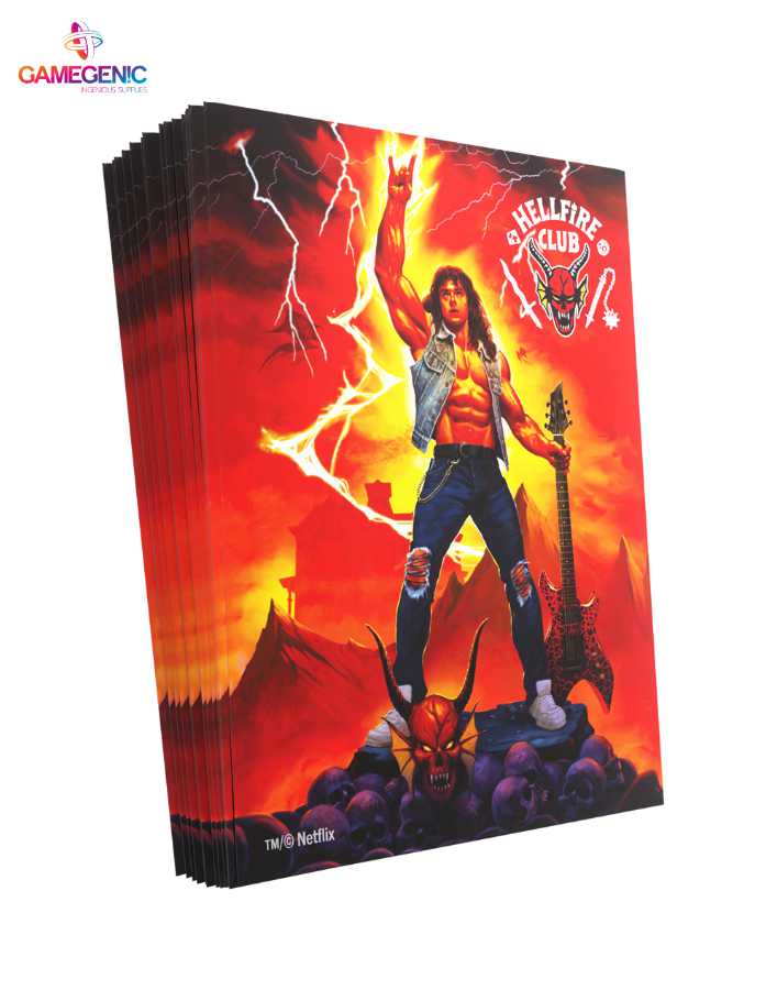 Las fundas Hellfire Club Art Sleeves de gran calidad mates, impresas a todo color y oficiales del club del Fuego Infernal son un accesorio imprescindible para cualquier fan de la serie Stranger Things™.