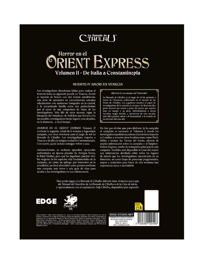 HORROR EN EL ORIENT EXPRESS contiene una extensa y legendaria campaña de hasta diecinueve aventuras para el juego de rol La llamada de Cthulhu.