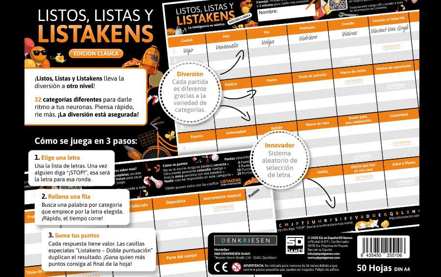 Listos, Listas y Listakens – Edición Clásica es un juego de mesa con el que llevarás la diversión a otro nivel.