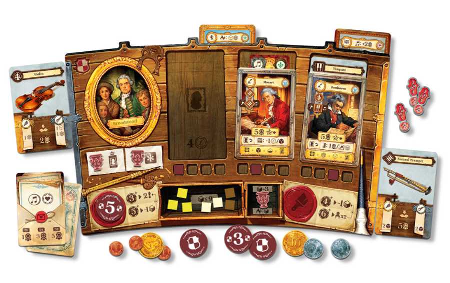Mediante una nueva y exclusiva combinación de pujas ocultas y colocación de trabajadores, los jugadores gestionan recursos para fabricar diversos instrumentos musicales en su taller, al tiempo que cortejan a mecenas históricos reales a través de un cuadro personal de acciones y bonificaciones en constante cambio.