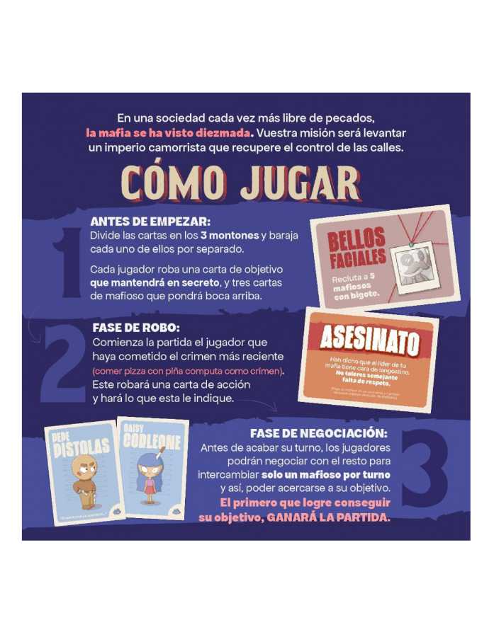 Robad vuestra carta de objetivo secreto, reclutad vuestros tres primeros mafiosos y que comience la fiesta.
