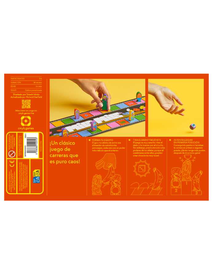 Tira un dado y mueve a tu corredor tantas casillas como indique el resultado, pero todos los corredores tienen habilidades extravagantes con resultados insospechados que te mantendrán en vilo.