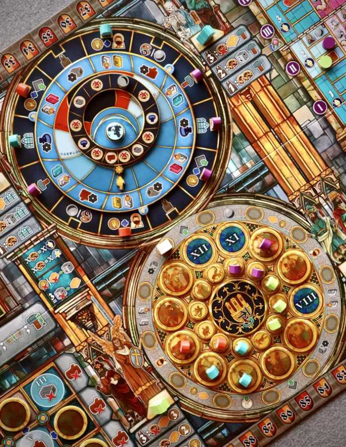 Durante la partida los jugadores también construirán el carrillón de los apóstoles, ampliarán su taller o contratarán ayudantes que te aportarán puntuación adicional al final de la partida.