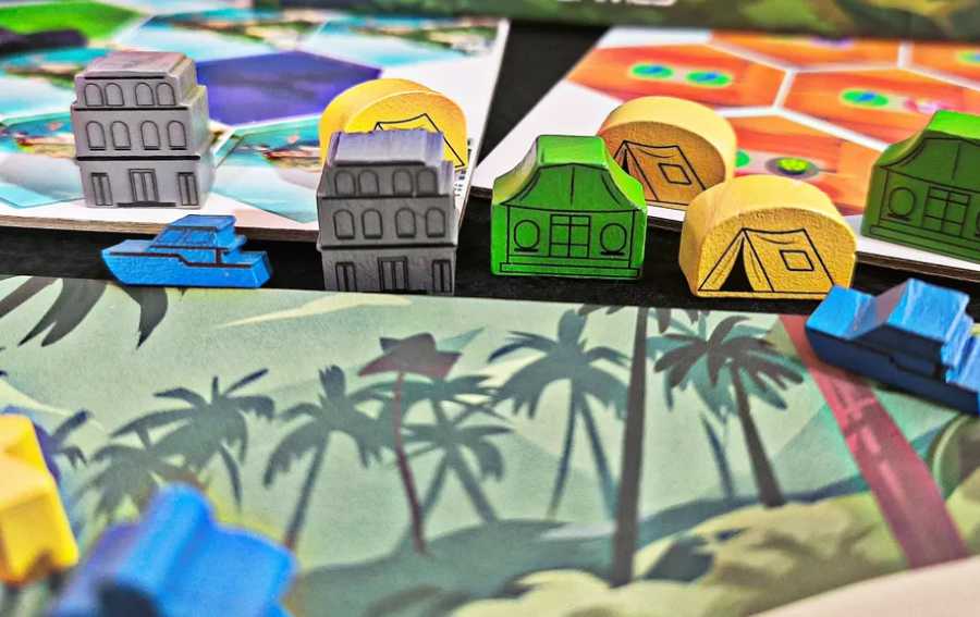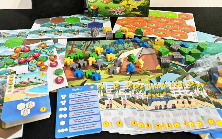 Con mecánicas de colocación de losetas, gestión de recursos y planificación táctica, los jugadores deberán recolectar recursos, construir resorts de playa, hoteles y cabañas de montaña, y cumplir objetivos secretos para maximizar su puntuación.