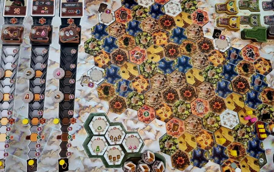 Durante el juego, mejorarás tu tribu adquiriendo nuevas cartas de llave, mejorando tus espacios de acción o recogiendo piedras de habilidad y reliquias.