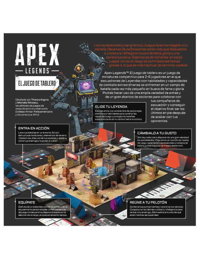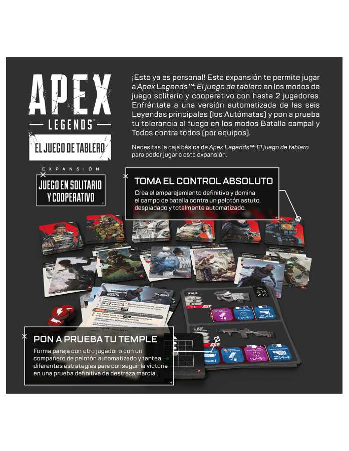 Apex Legends: el Juego de Mesa – Squad es una expansión para el juego de mesa Apex Legends con la que podrás incluir un nuevo pelotón a tus partidas. 6 nuevos héroes legendarios están dispuestos a entrar a la arena.