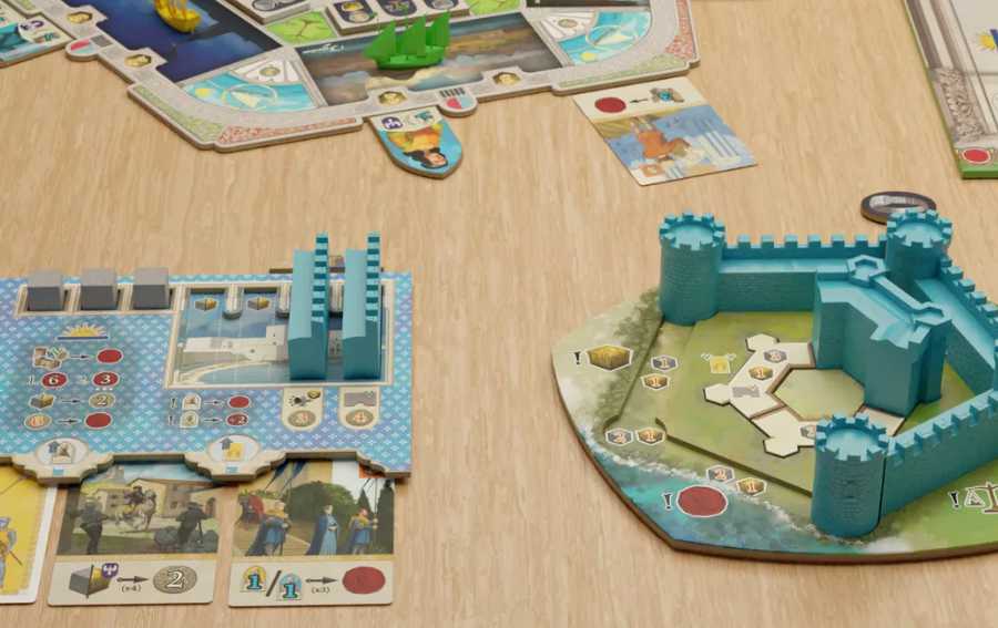 Obtendrás ventajas mejorando tu castillo: las torres albergan aliados adicionales, las murallas almacenan más recursos y las fortalezas te ayudan a gestionar las cartas de acción.