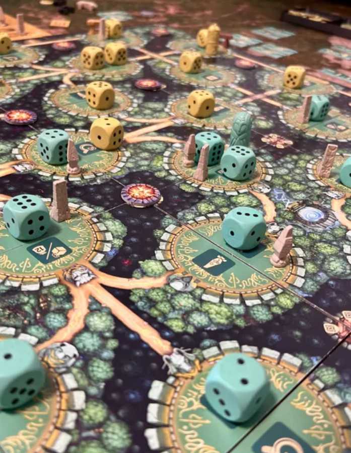 The Druids of Edora es un juego de mesa en el que tendrás que colocar estratégicamente tus dados para construir menhires y estelas con la ayuda de hierbas curativas y piedras misteriosas.