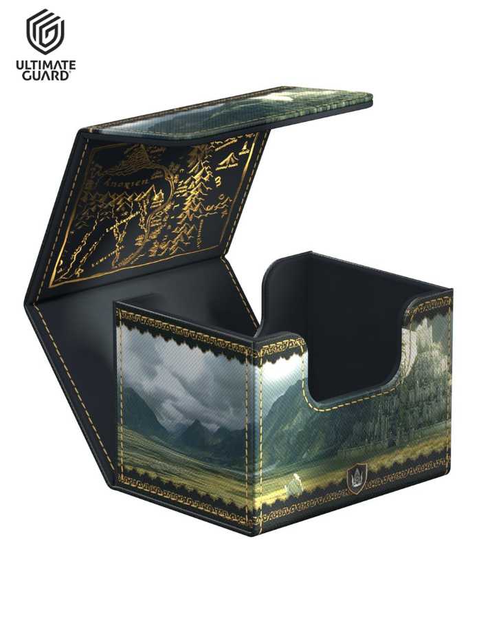 Las cajas para mazo de la edición oficial The Lord of the Rings™ “Places of Middle-earth” de Ultimate Guard están impresas a todo color y están optimizadas para contener hasta 100 cartas con doble funda en fundas Ultimate Guard*.