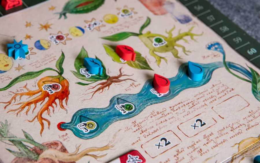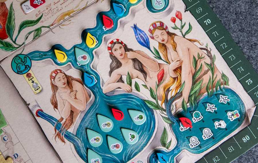 En tu turno, abres tu libro por cualquier lugar y seleccionas una de las páginas para realizar las acciones mostradas en la parte superior de dicha página (carta). Cada página te permite interactuar con una de las 5 secciones principales del manuscrito (botánica, astrología, baños, escritos y recetas).