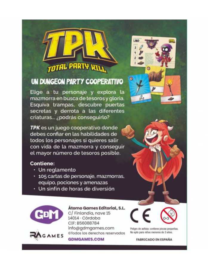 TPK – Total Party Kill es un juego de cartas cooperativo donde debes confiar en las habilidades de todos los personajes si quieres salir con vida de la mazmorra y conseguir el mayor número de tesoros posible.