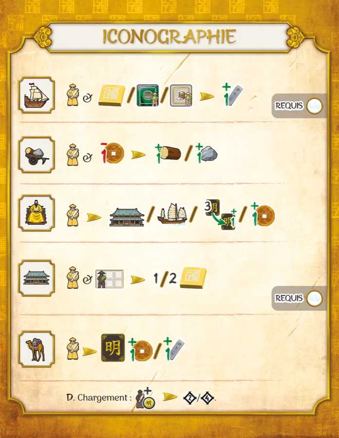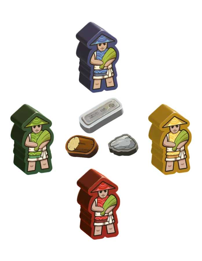 Esta edición de Yinzi: Ming contiene componentes deluxe como fichas y figuras impresas a color, y tableros de jugador de doble capa.