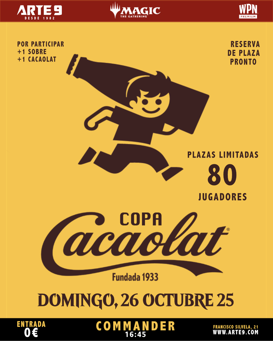 Resumiendo, por CERO EUROS te llevas una tarde de diversión, 1 Cacaolat, 1 Sobre de Magic y 1 Token Exclusivo.