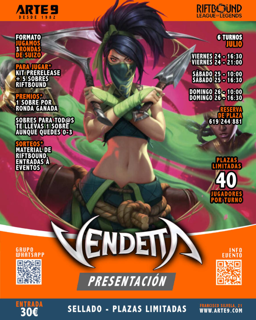 VENDETTA es la cuarta ampliación de RIFTBOUND y la TERCERA cuyo lanzamiento está previsto para 2026. ___________________________________________________________ Nosotros, como siempre, lo damos todo, ofreciendo… ¡¡6 eventos de presentación!! ___________________________________________________________ SEIS PRESENTACIONES –16:30 … Sigue leyendo