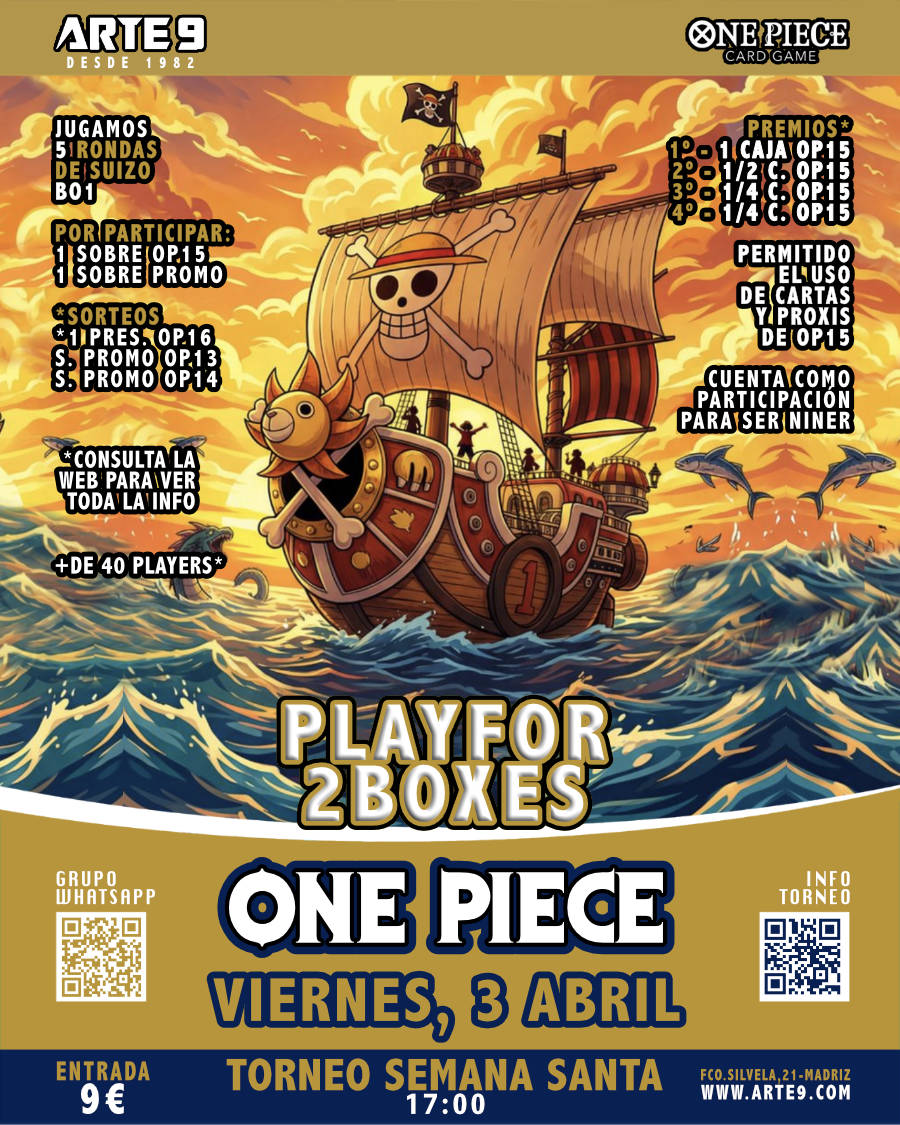 El VIERNES POR LA TARDE estamos abiertos desde las 17:00 para disfrutar de una estupenda TARDE de ONE PIECE en ARTE 9.