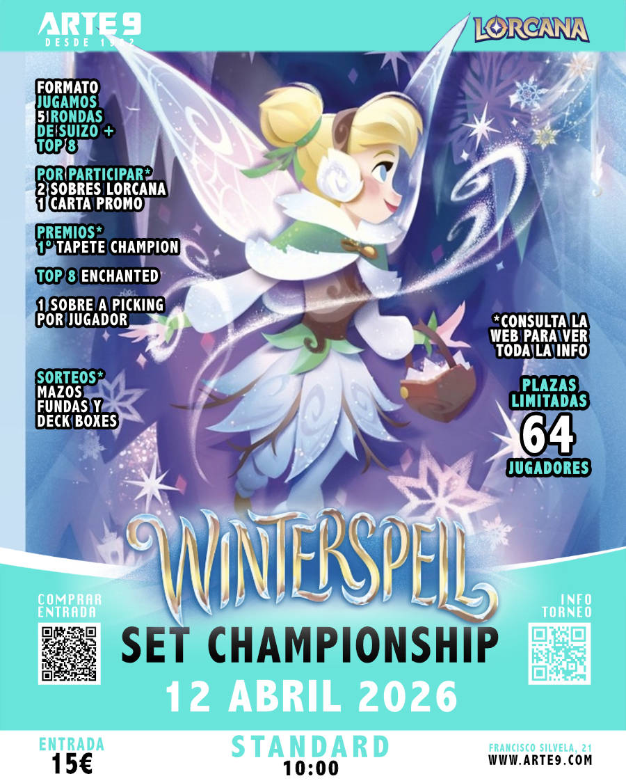 Los SÁBADOS estamos abiertos desde las 17:00 para disfrutar de una estupenda TARDE de DISNEY LORCANA. ___________________________________________________________ ESTE SÁBADO JUGAMOS UNA NUEVA JORNADA DE LA LIGA DE WINTERSPELL. LIGA DE LORCANA - 10 JORNADAS + TOP Inscripción: 17:00 – Lanzamos 1ª ronda: 17:30 CALENDARIO JORNADA 1 – 21 Febrero 2026 JORNADA 2 – 28 Febrero 2026 JORNADA 3...