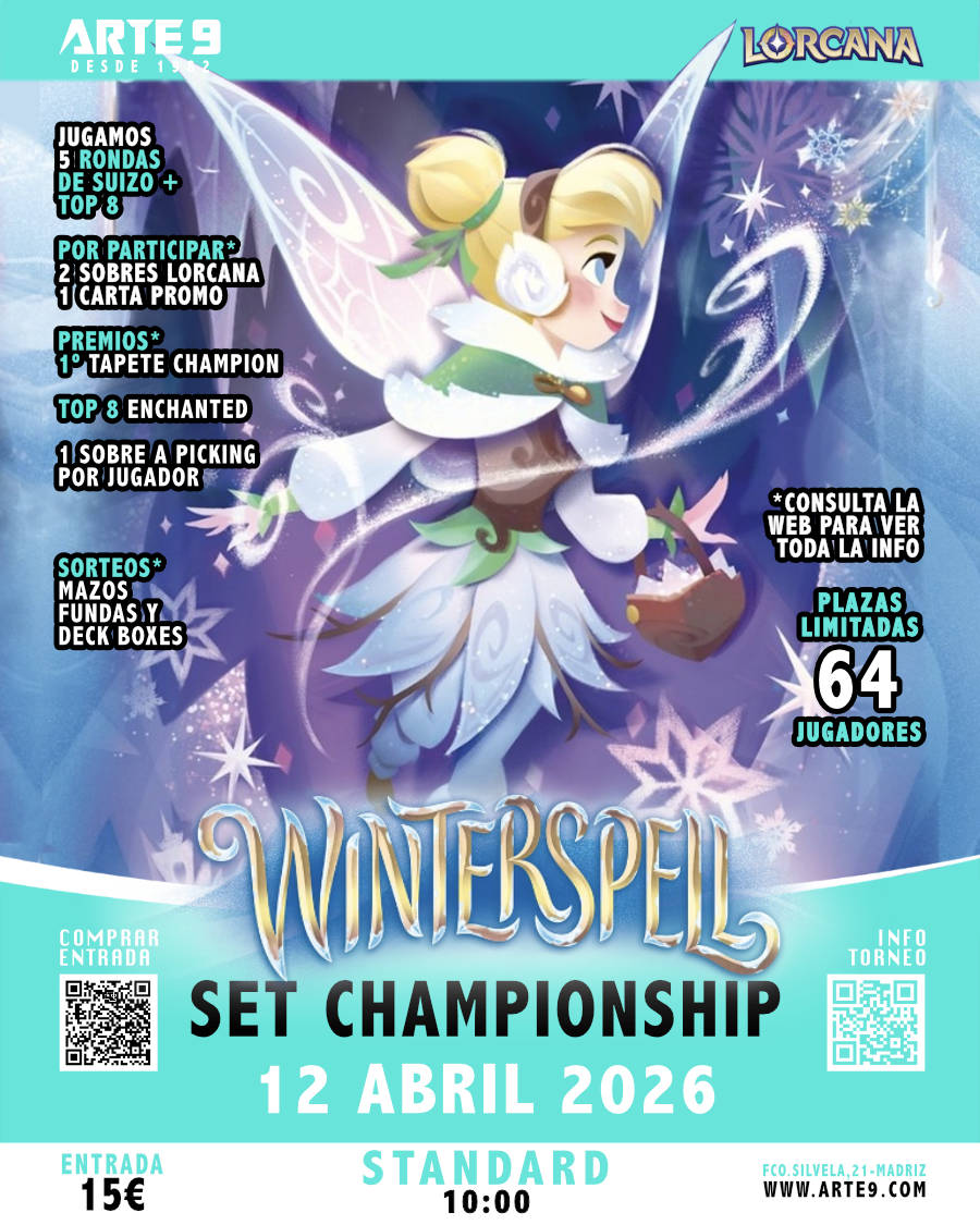 Los SÁBADOS estamos abiertos desde las 17:00 para disfrutar de una estupenda TARDE de DISNEY LORCANA. ___________________________________________________________ ESTE SÁBADO JUGAMOS UNA NUEVA JORNADA DE LA LIGA DE WINTERSPELL. LIGA DE LORCANA - 10 JORNADAS + TOP Inscripción: 17:00 – Lanzamos 1ª ronda: 17:30 CALENDARIO JORNADA 1 – 21 Febrero 2026 JORNADA 2 – 28 Febrero 2026 JORNADA 3...