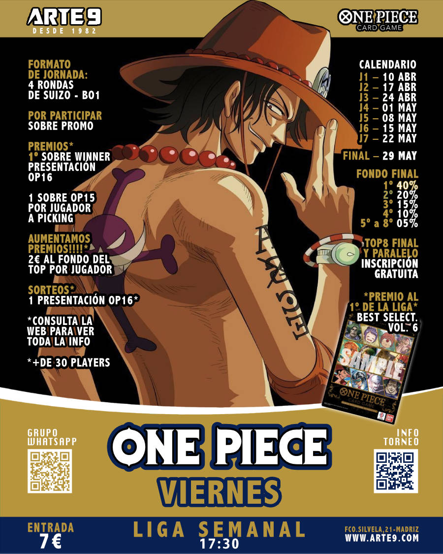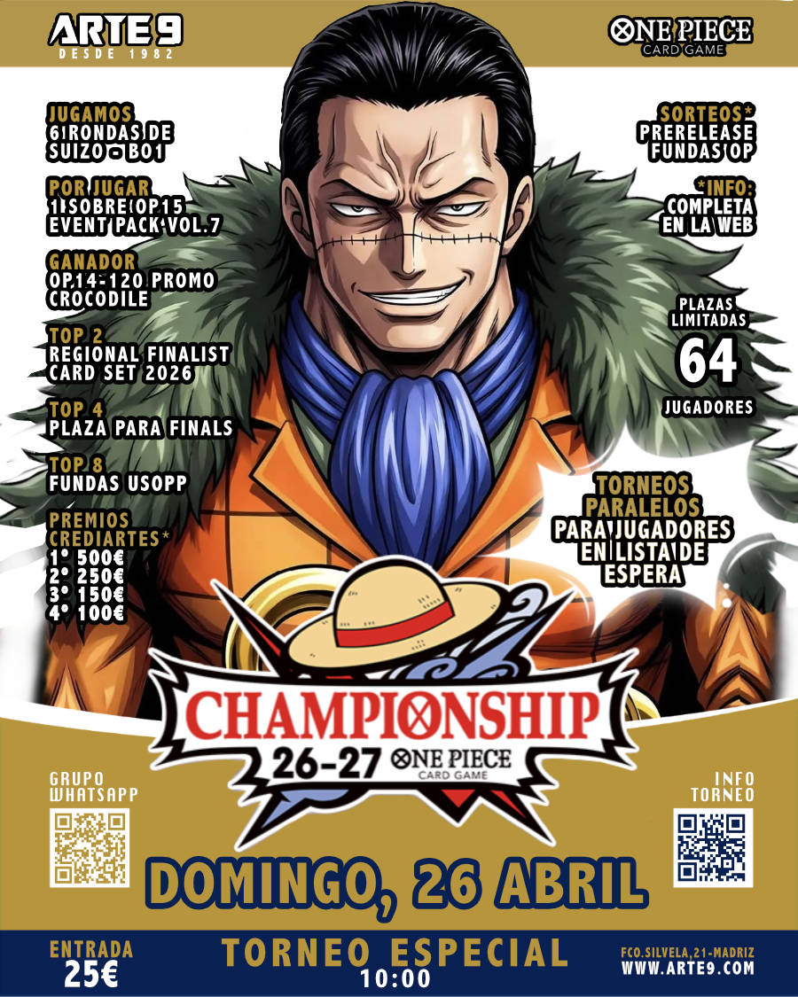 ¡Estrena la nueva colección de ONE PIECE, OP 15 con la presentación de ADVENTURE ON KAMI'S ISLAND. Bandai ya nos ha hecho tienda GOLD, por nuestra gestión de torneos, por lo que... TIRAMOS LA CASA POR LA VENTANA, Y HACEMOS... 6 PRESENTACIONES!!!! 6 TURNOS DE PRESENTACIÓN 17:00 - Viernes 27 MARZO 2026 10:00 - Sábado...